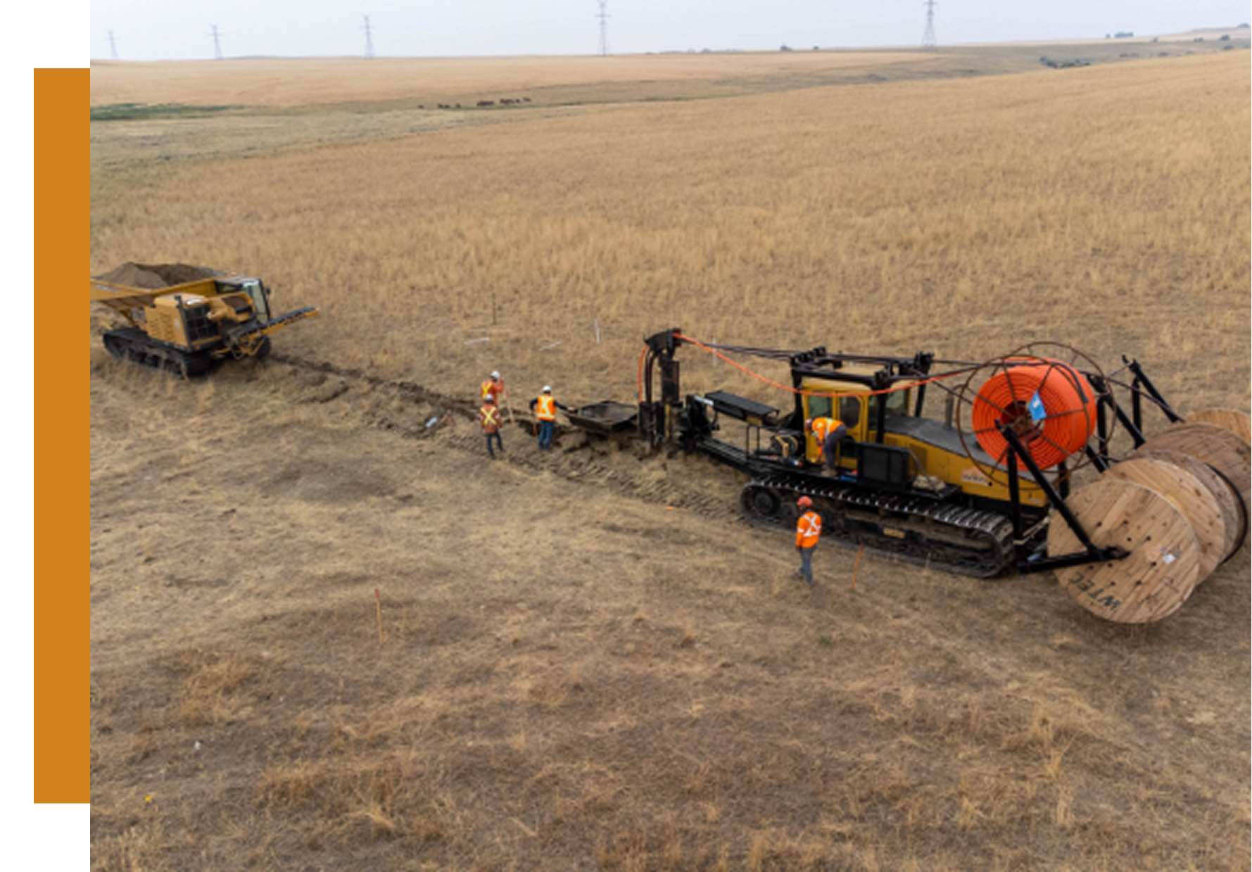Plowing supports high-volume cable installs in wind and solar projects, handling large reels and heavy loads while minimizing environmental impact.